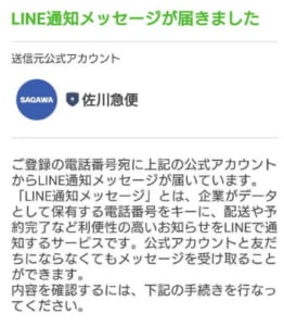 佐川急便からのチャットは、配達時に登録した電話番号とLINEに登録している電話番号が一致した場合に送られてきます。