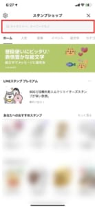 スタンプショップに移動するので、画面上部の検索をタップしてキーワードを入力してください。