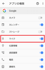 LINEアプリのマイク設定をオフにしてオンに戻す作業をしても解決しない場合は、Googleへの許可をオフにしてオンに戻す作業を試してみてください。