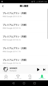 契約中のプレミアムプランの表示や購入履歴・チケット購入などが可能になっています。