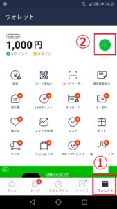 ②:LINE Payの金額の右にある「+」をタップ