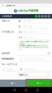 全て入力後「次へ」をタップしてください。