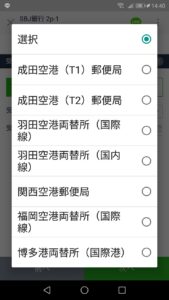 「空港/港」を選んだ場合どこで受け取るか選ぶ必要があるので「受取り場所」をタップしてください。