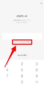 LINEpayアプリを開きます。するとパスワード入力画面が表示されますので、入力スペース下にあるパスワードをお忘れの場合をタップします。