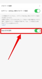 LINEpayでは、数字でパスワード入力だけではなくFace ID(生体認証)でのログインを行う事も可能です。Face IDを使用する事で、パスワードの入力をする必要がなくなる為、第三者にパスワードを入力しているところを盗み見される心配がなくなります。