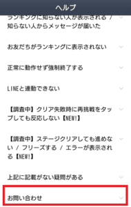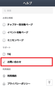 お問い合わせを選択し、さらにお問い合わせをタップします。