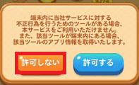 「許可しない」を押すと、ゲームが終わってアプリが自動的に終了し、プレイ出来ないため「許可する」をタップするようにしましょう。
