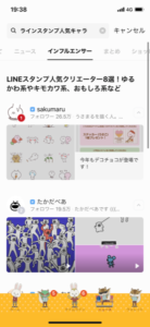 例えば「ラインスタンプ 人気キャラ」で検索すると、うさまるを描いているsakumaruさんや、ぬるぬる動くクマが人気のたかだべあさん等フォロワーの多いインフルエンサーが上位に表示されます。