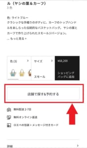オンラインストアで欲しい商品のページを開いたら店舗で探す&予約するを選び、検索ページに移動します。