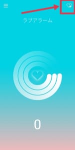 アラームを鳴らすためには、友達を招待しなければいけません。ですので、まずアプリトップの右上にある♡をタップしてください。