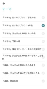 テーマはドラマに関する背景とマンガに関する背景とで9種類のテーマを選べます。