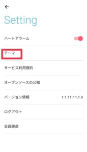 設定メニューのテーマをタップするとアプリトップ画面の背景が変更できます。