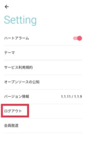 設定メニューからログアウトをタップで、アプリからログアウトができます。
