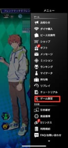プレイ画面でまずメニューをタップしましょう。次にゲーム設定をタップしましょう。