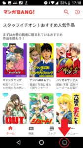 1.まずマンガBANG!を一度強制終了するためにスマホのメニューボタンをタップしましょう。