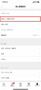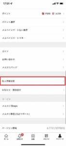 マイページが表示されるので、下にスクロールして個人情報設定をタップします。