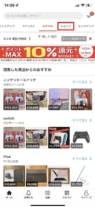 手順としては、メルカリアプリを起動してショップタブをタップします。