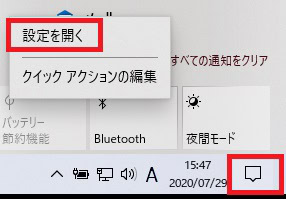 次にBluetoothの部分で右クリックした後、設定を開くをクリックしましょう。