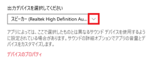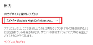 接続が悪く、音声が聞こえないという場合には、出力デバイスがイヤホンやスピーカーではなく、違うデバイスに設定されている可能性があります。