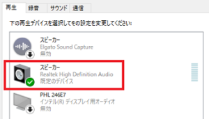 最後にスピーカーの部分で出力したいイヤホンやスピーカーになっているか設定を確認しましょう。