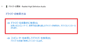 ドライバー検索方法が表示されるので、ドライバーを自動的に検索をクリックします。更新が必要か検索して、更新が必要な場合は自動的に更新してくれます。