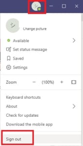 Microsoft Teamsを一旦サインアウトしてからサインインする