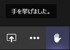 挙手状態のときには左下に手のアイコンが小さく表示されます。