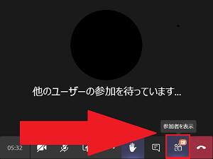 誰が挙手しているのか知りたい場合、人型のアイコンをクリックして参加者一覧を表示させます。