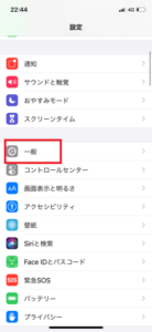 そして「一般」をタップし、次のページで赤枠の中にある「iPhoneストレージ」で使用状況を確認できます。