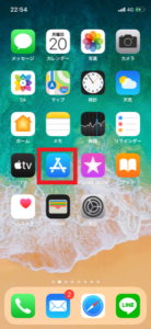 まずは、ホーム画面から赤枠で囲んである「App store」のアイコンをタップしましょう。