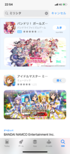 そして検索バーから「ミリシタ」でアプリを検索しましょう。