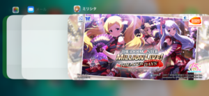 iPhoneでは、ホームボタンを二度押しすれば現在起動中のアプリが一覧となって表示されるので、「ミリシタ」を削除しましょう。
