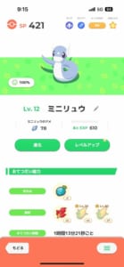 ミニリュウを入手した後の進化には、特定のレベルとミニリュウのアメが必要です。