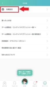 マイページの右上にある…をタップし、各種設定を選択します。