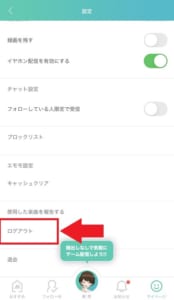 設定画面の下部にあるログアウトをタップ。これでログアウトが完了しました。