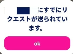 NauNauでは、リクエストしている状態で、再度リクエストを送ると「すでにリクエストは送られています」と表示されます。