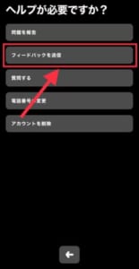 お問い合わせをタップし、フィードバックを送信をタップします。