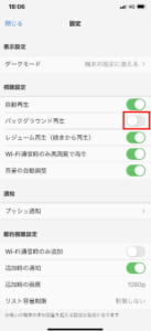 こちらでバックグラウンド再生の横のボタンが緑色になっていればオンの状態となっています。