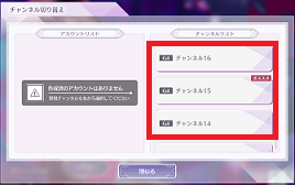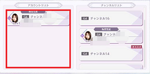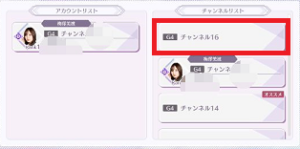 乃木坂的フラクタルを起動したトップ画面で変更ボタンのページからチャンネルを選択することで、選んだチャンネルに新しくアカウントを作成できます。