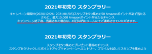 Amazonでは、定期的にスタンプラリーキャンペーンを実施しており、今回の初売りにあわせても実施されています。