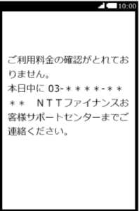 本日中に03-****-**** NTTファイナンスお客様サポートセンターまでご連絡ください。