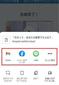 なお、スマホ版だとダウンロードせずにGmailやLINE、もっと見るからDiscordなどにも共有出来ます。