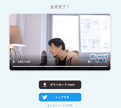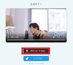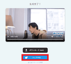 Twitterに共有したい場合は、またはツイートで共有を選択しダウンロード(mp4)をクリックしてください。