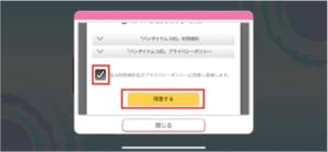 プライバシーポリシーの確認画面に遷移するので、赤枠のチェックボックスをクリックして、同意するを選択してください。