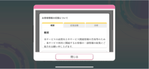 問題なくログインできればお客様情報の収集についての画面が表示されます。
