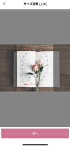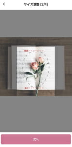 指で写真を拡大したり縮小させてサイズを調整し次へをタップします。
