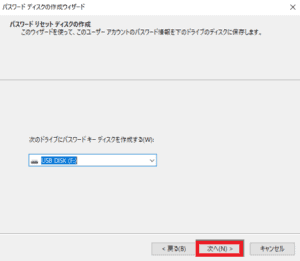 ディスクを使ってパスワードのリセットを行う際は、ログイン画面で代わりにパスワードリセットディスクを使用するを選択し次へをクリックします。