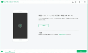 操作からロック解除までが非常にスピーディーで、初めて利用したにも関わらず、PassFab Android Unlockerの起動からロック解除までにかかった時間は3分以内と非常に短かったです。