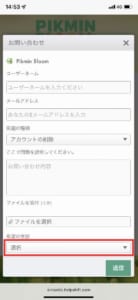 こちらで先ほど確認したユーザーネームとメールアドレスを入力し、問題の種類の下にある選択をタップします。