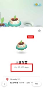 マリオの帽子を被ったピクミンの苗は、スロットへセットしてから1万歩歩かなければ成長しません。